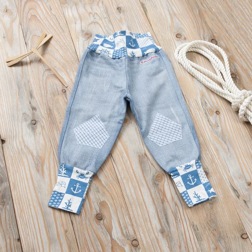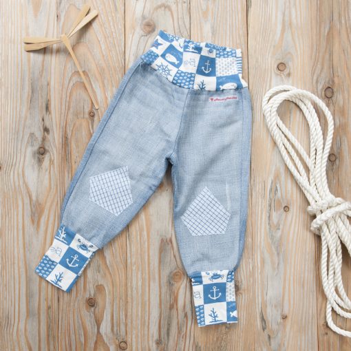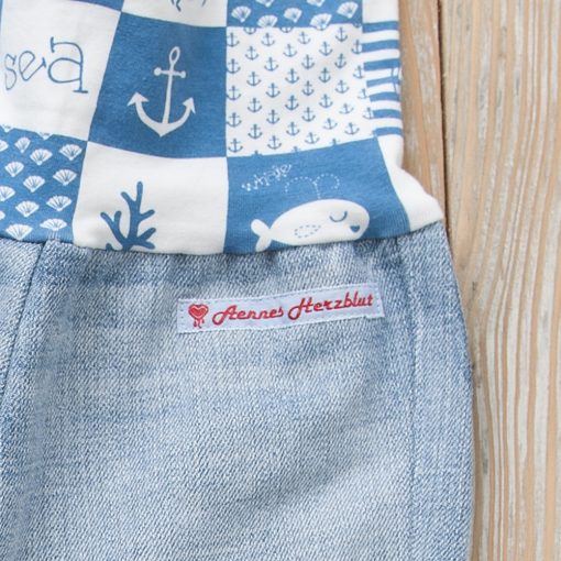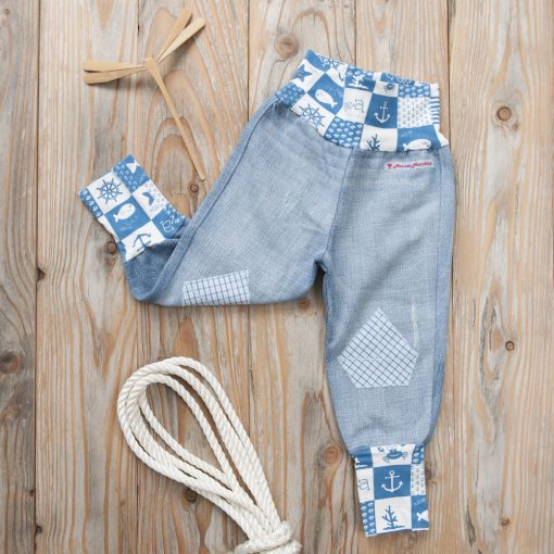 Pumphose aus recyceltem Jeans mit maritimen Motiv