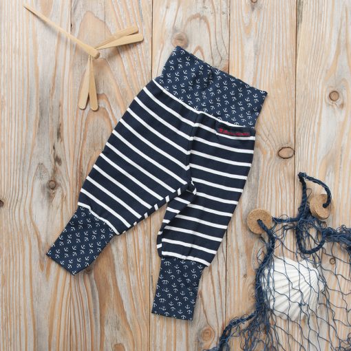 Diese Pumphose in blau-gestreift, ist einfach perfekt für das Baby. Sie ist aus einem Bio-Baumwoll Jersey genäht. Dieser fühlt sich sehr angenehm weich an. In dieser Pumphose ist Platz für die Windel, sie engt nicht ein und sie wächst einfach auch noch lange mit. Perfekt!